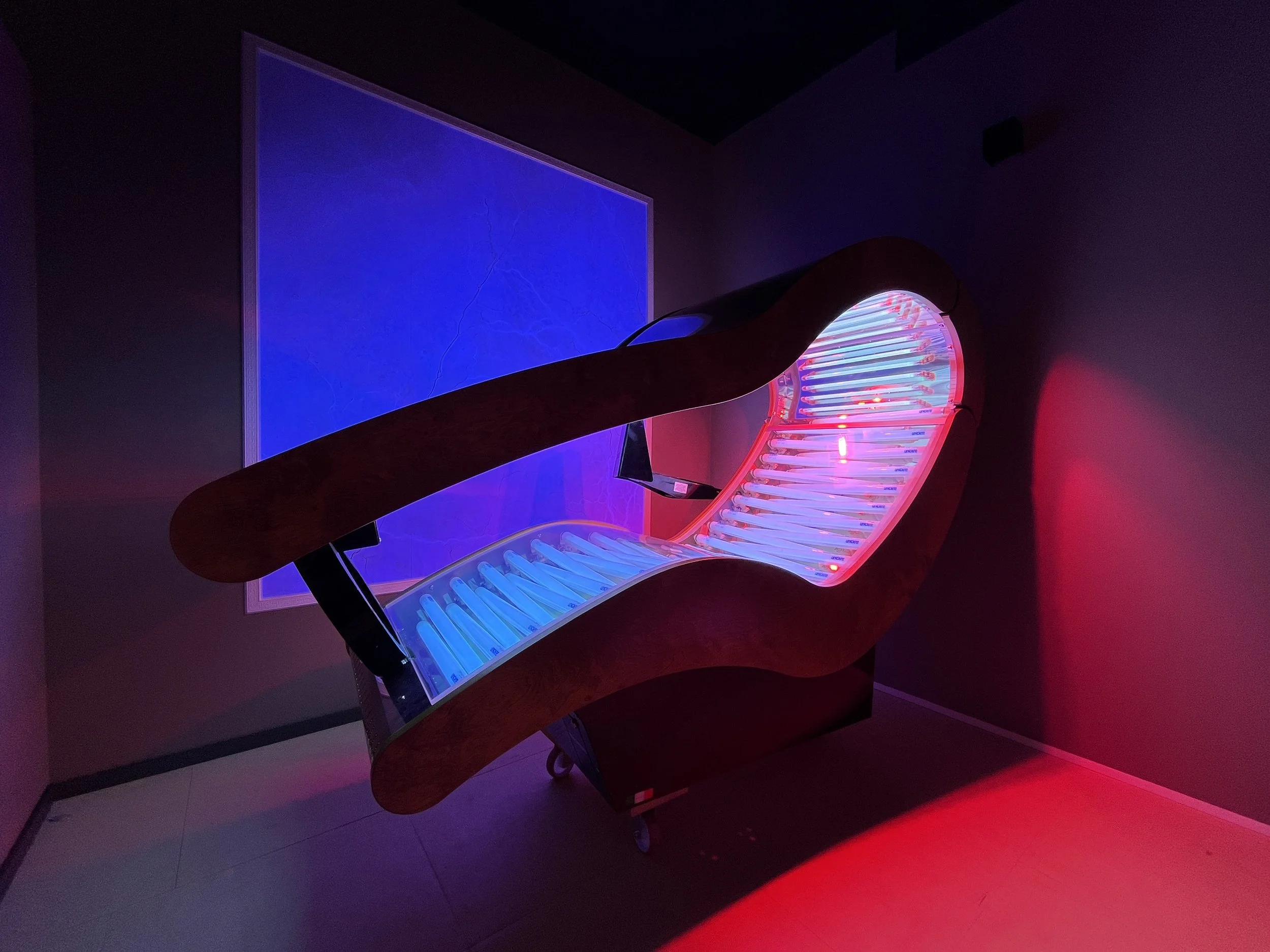 An elegant and modern tanning or red light therapy bed for exceptional venues.